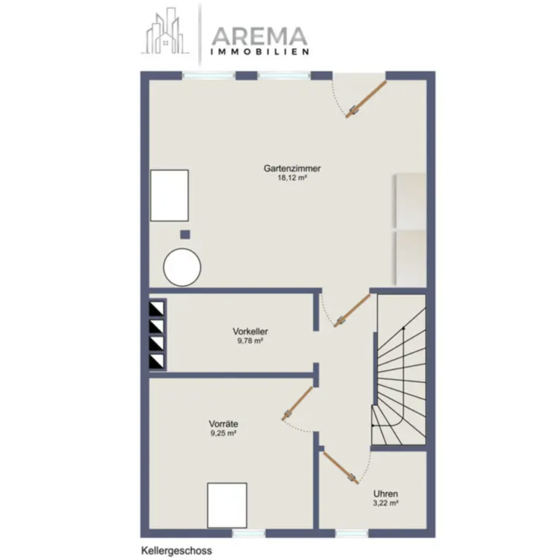 Das Objekt ist komplett unterkellert und bietet mit vier Räumen viel Stauraum. Der Keller ist aufgeteilt in einen Vorratsraum, Werkstatt, Heizungskeller und einen weiteren großen Hobbyraum über den man direkt in den Garten gelangt.